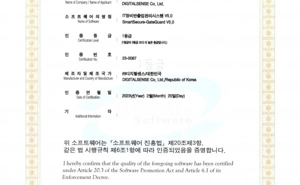 디지탈센스, ‘IT장비 반출입관리 시스템’ ICT융합품질인증 획득